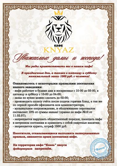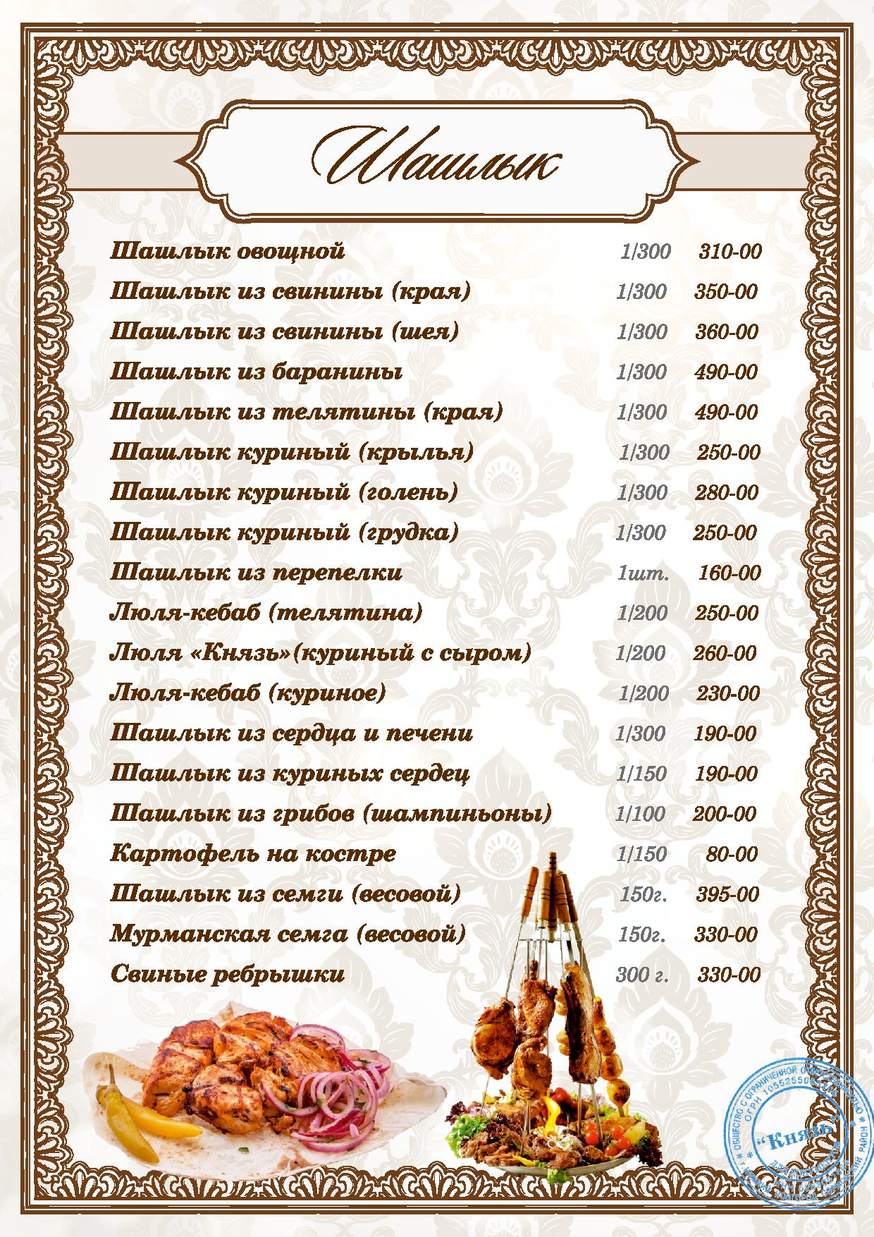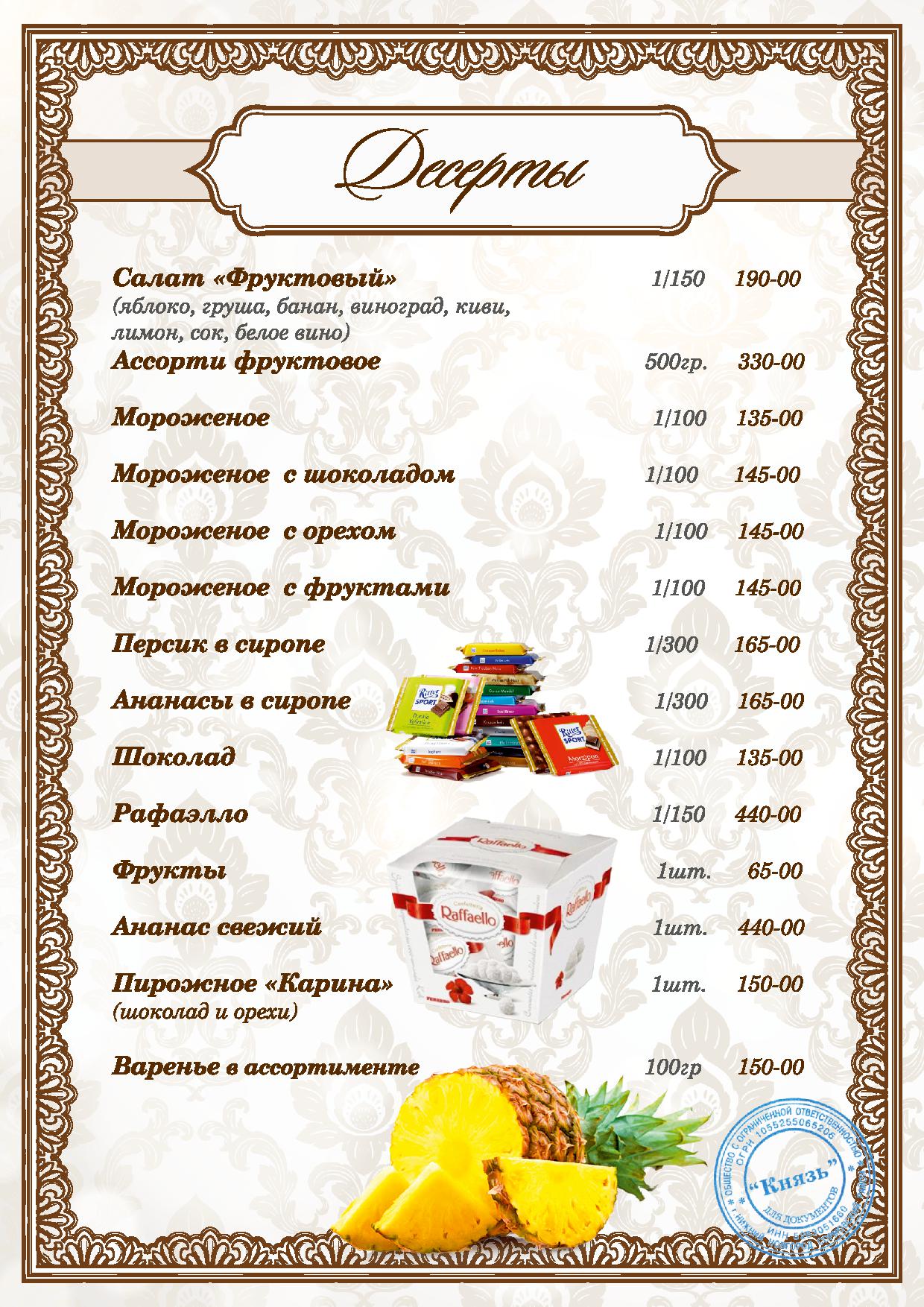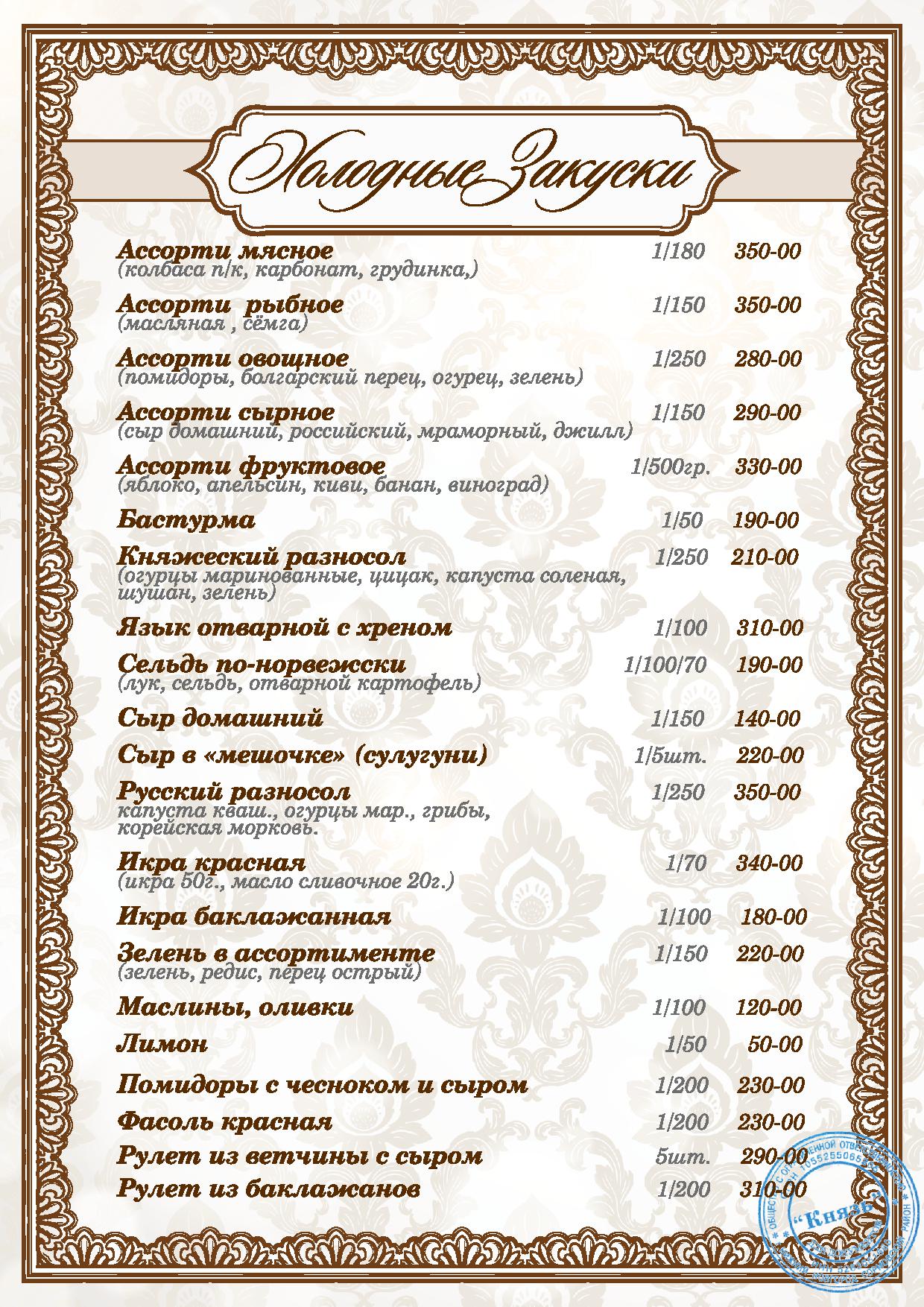 Если вы планируете организовать свой праздник у нас, то позвоните нам и мы с удовольствием предоставим Вам банкетное меню кафе Князь!