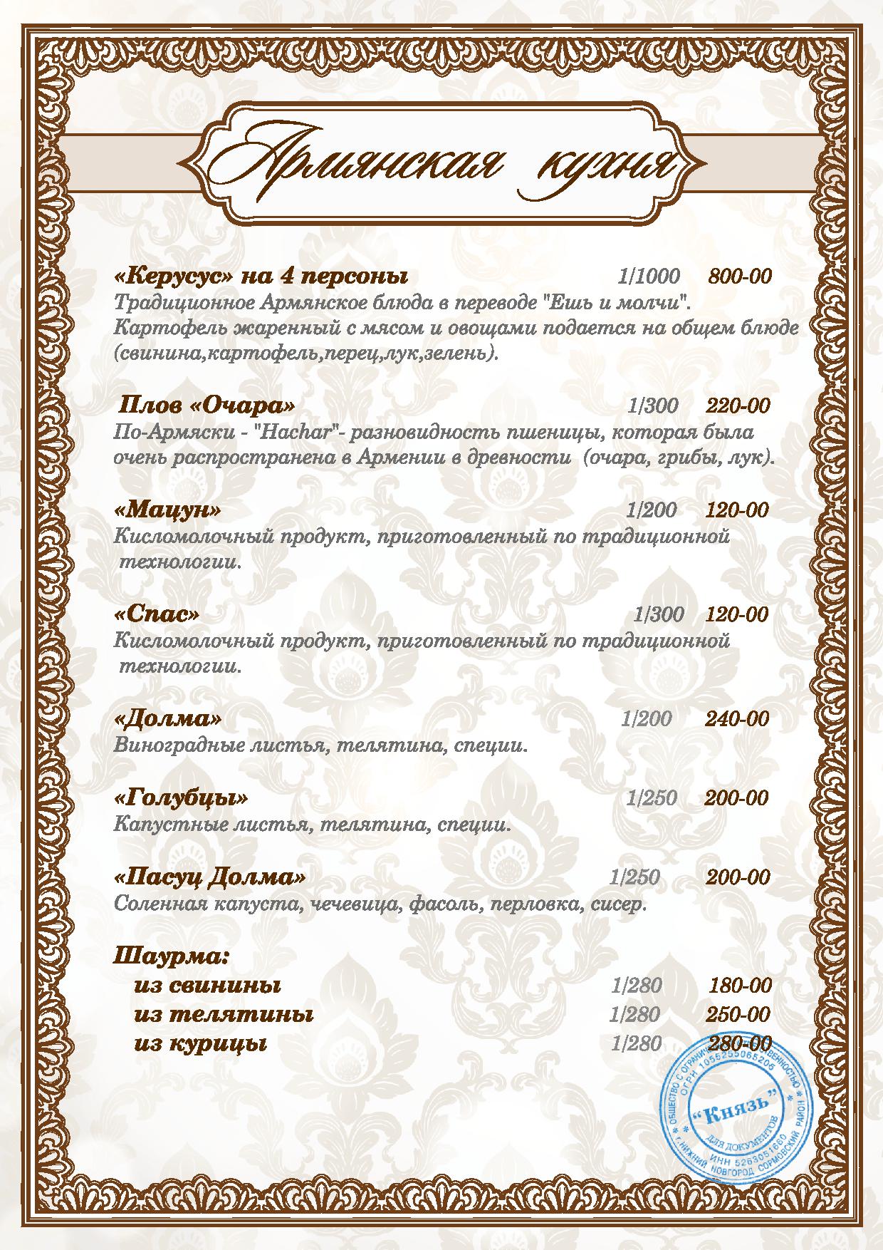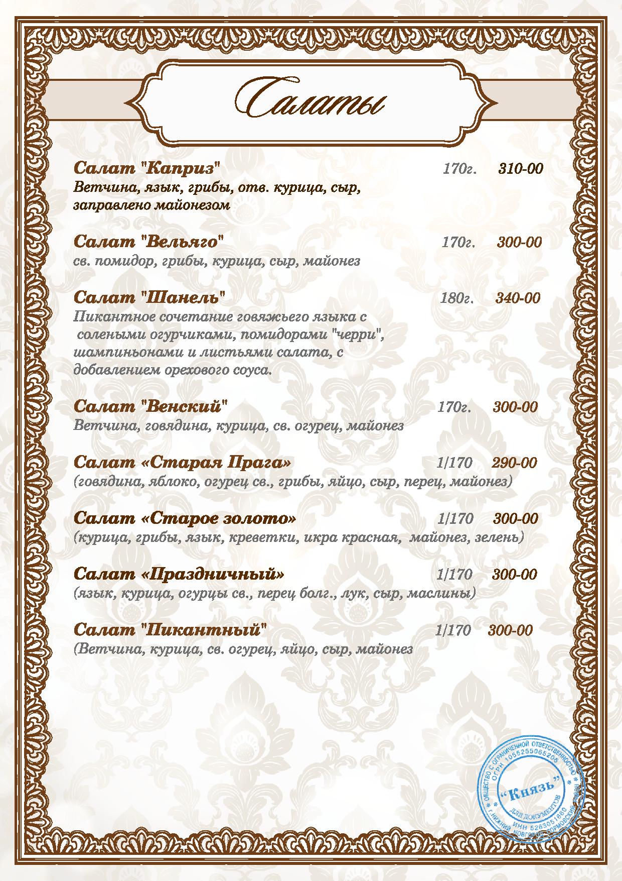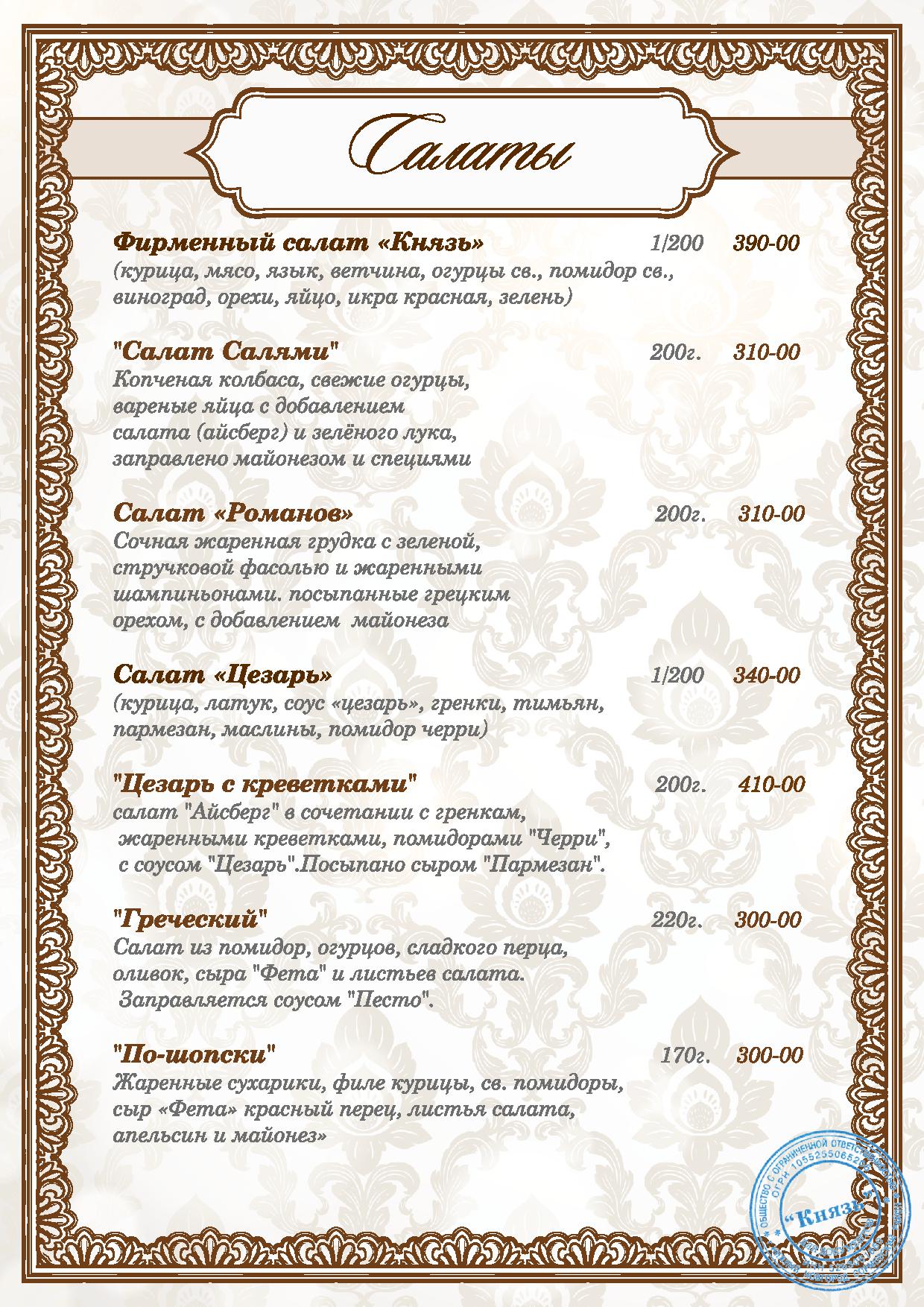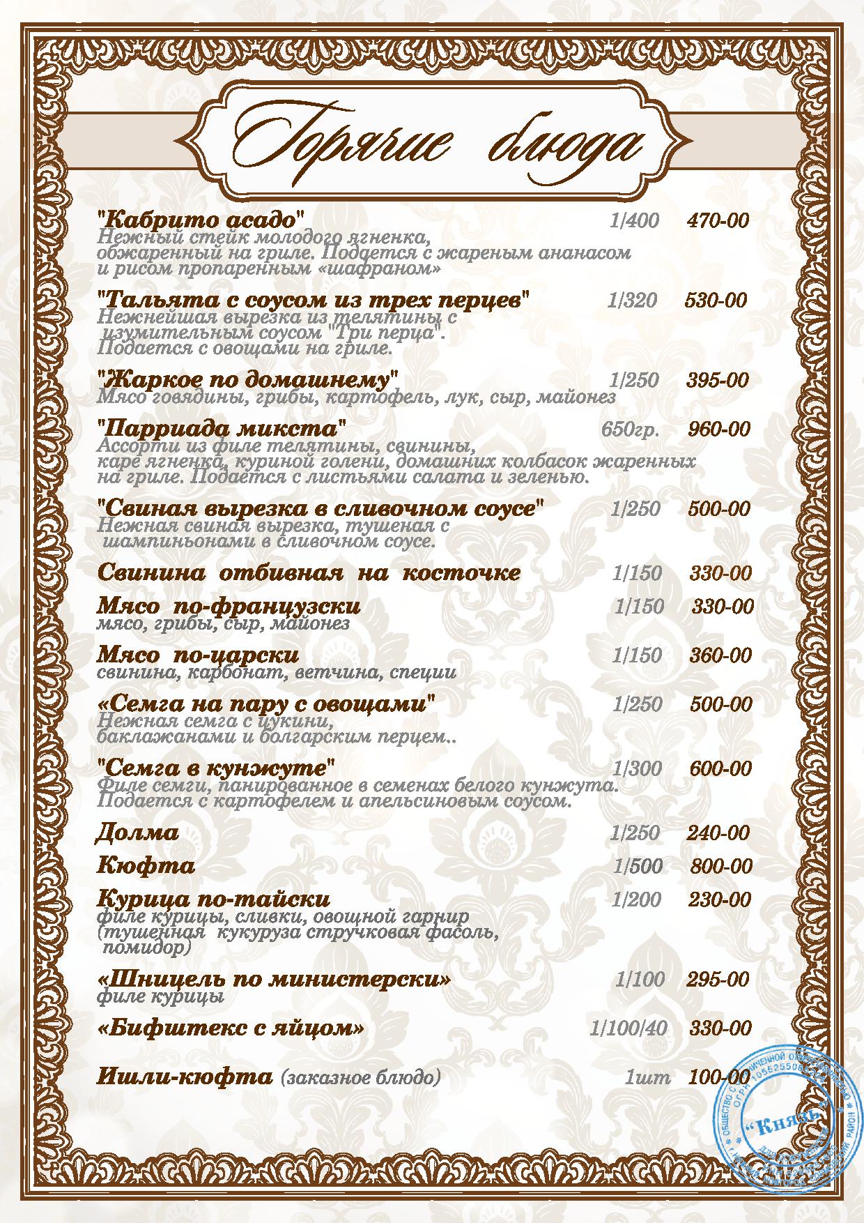 Если вы планируете организовать свой праздник у нас, то позвоните нам и мы с удовольствием предоставим Вам банкетное меню кафе Князь!
